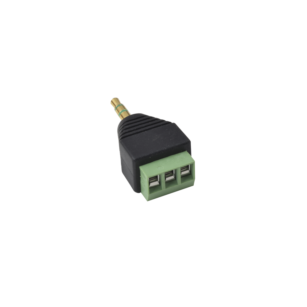 - Conecta extremo descubierto de cableado de audio a terminales hembra atornillables del conector de 3.5 mm