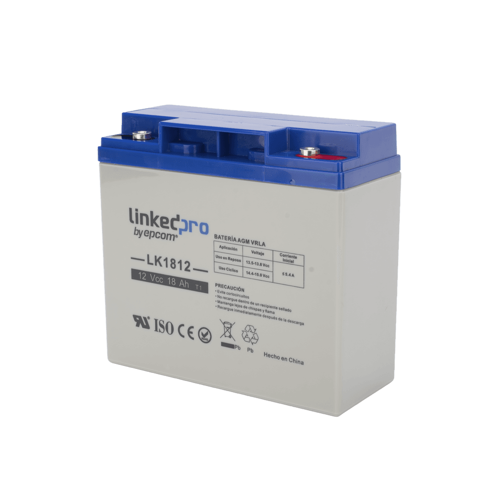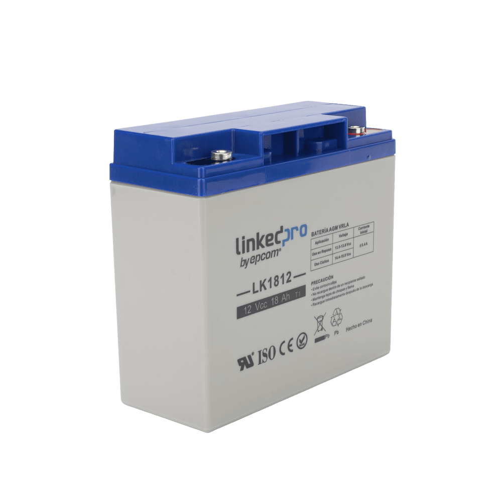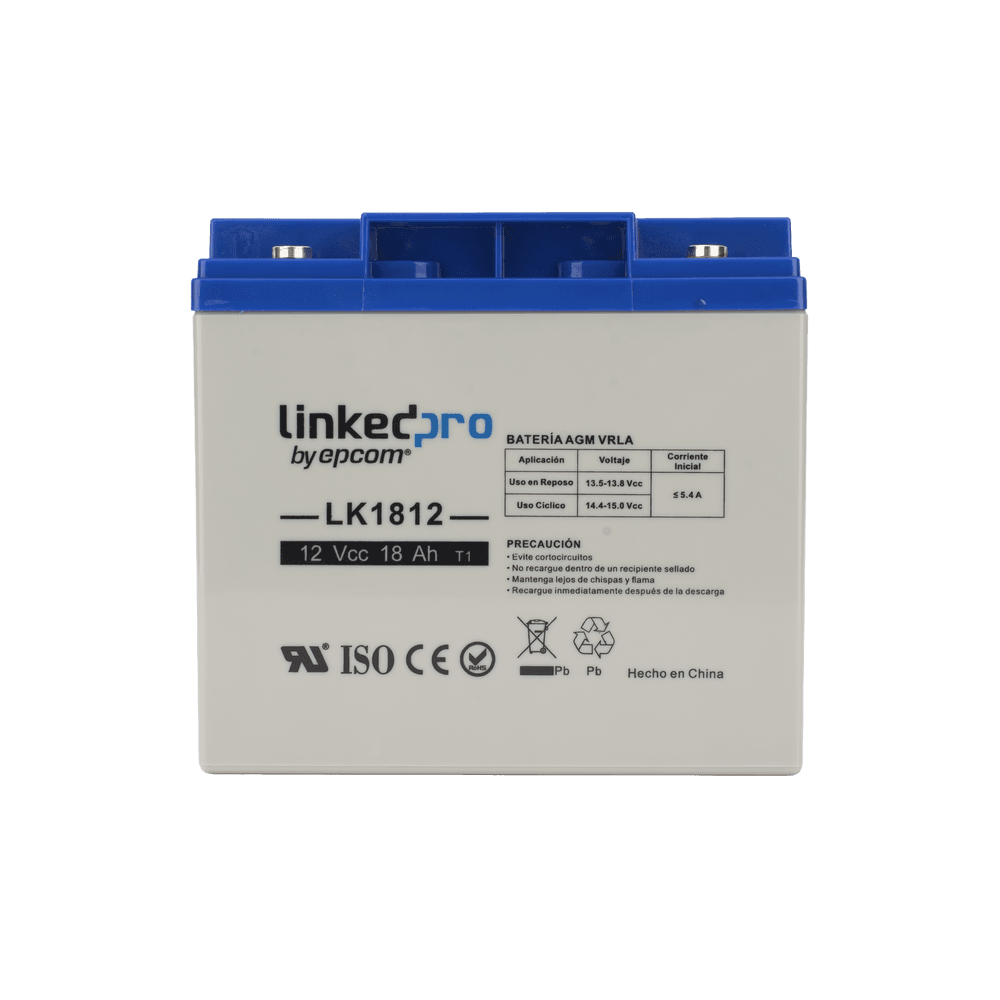 La serie de baterías LINKEDPRO, están diseñadas con tecnología AGM-VRLA (Fibra de vidrio absorbente, con válvulas de regulación), placas de alto rendimiento y electrólito para proporcionar una salida de energía adicional. Las baterías de la serie LINKEDPRO BY EPCOM son baterías de respaldo para equipos electrónicos, con una vida útil de diseño flotante de 5 años a 25°C, están aprobadas por UL (MH62092).