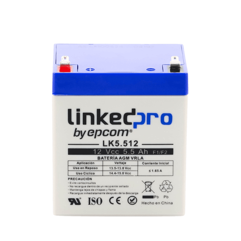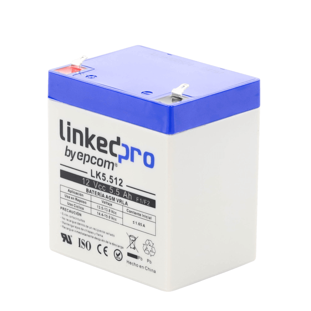 La serie de baterías LINKEDPRO, están diseñadas con tecnología AGM-VRLA (Fibra de vidrio absorbente, con válvulas de regulación), placas de alto rendimiento y electrólito para proporcionar una salida de energía adicional. Las baterías de la serie LINKEDPRO BY EPCOM son baterías de respaldo para equipos electrónicos, con una vida útil de diseño flotante de 5 años a 25°C, están aprobadas por UL (MH62092).