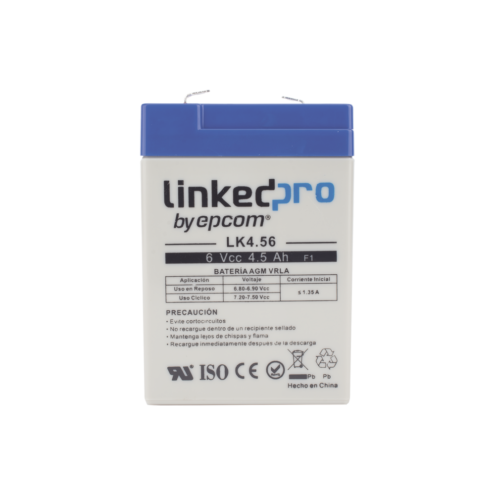 La serie de baterías LINKEDPRO, están diseñadas con tecnología AGM-VRLA (Fibra de vidrio absorbente, con válvulas de regulación), placas de alto rendimiento y electrólito para proporcionar una salida de energía adicional. Las baterías de la serie LINKEDPRO BY EPCOM son baterías de respaldo para equipos electrónicos, con una vida útil de diseño flotante de 5 años a 25°C. Están aprobadas por UL (MH62092).