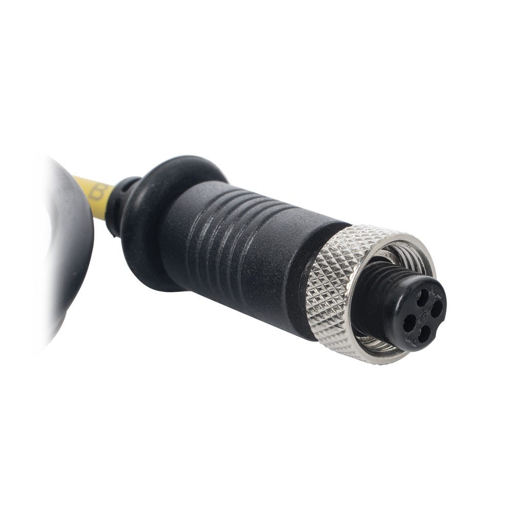 - Conector tipo aviación de 4 pines M12 (por el mismo cable de video inyecta la alimentación)