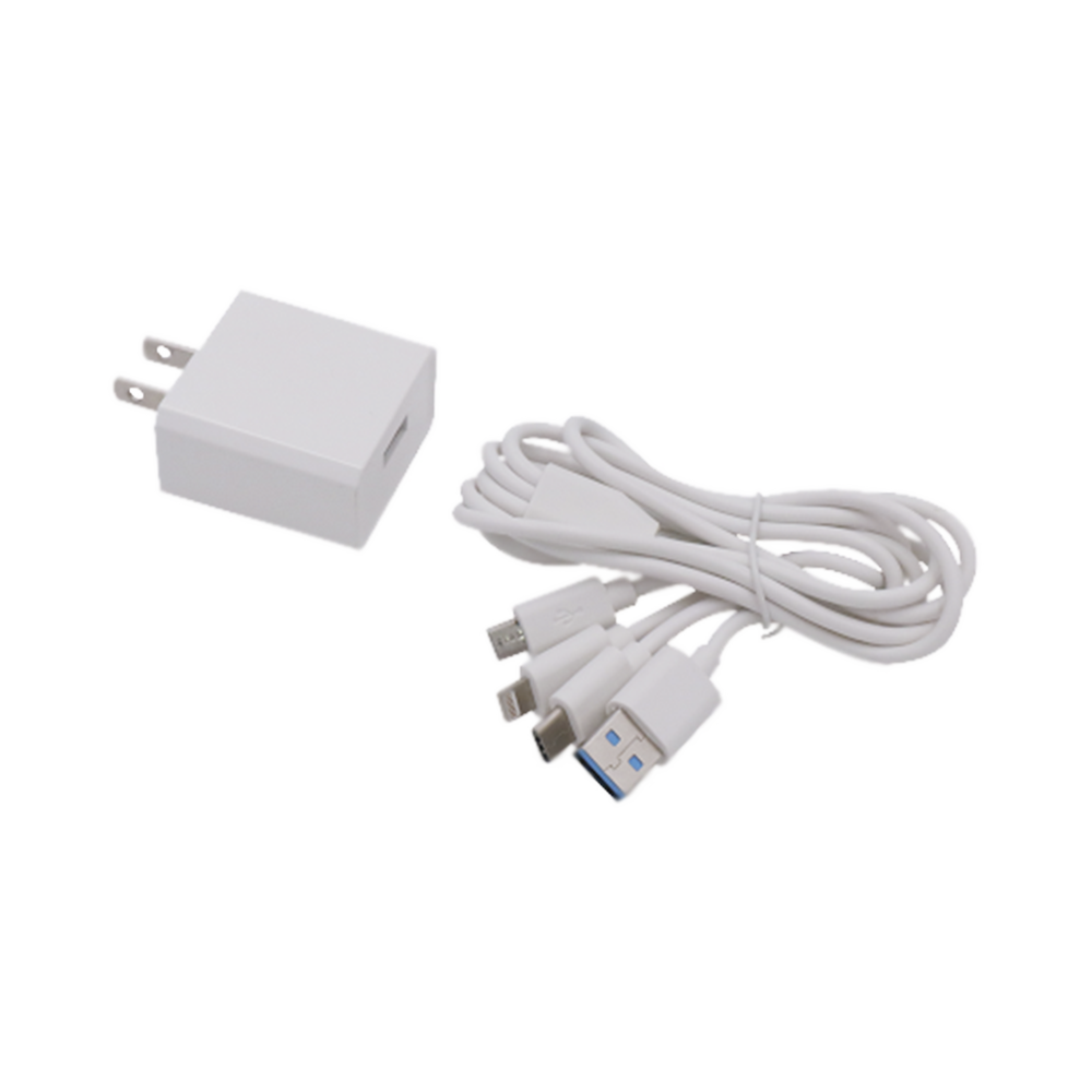 Cargador de pared USB de 5 Vcc 2A / Multi-puertos / USB-C / Micro USB / Tipo C / Lightning (iPhone) / Extensión de cable 1.2 metros
