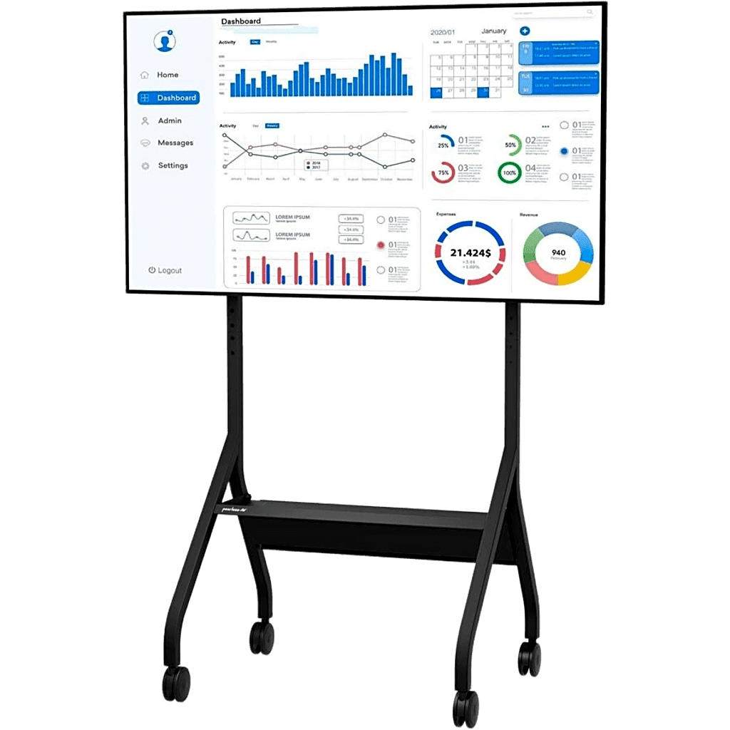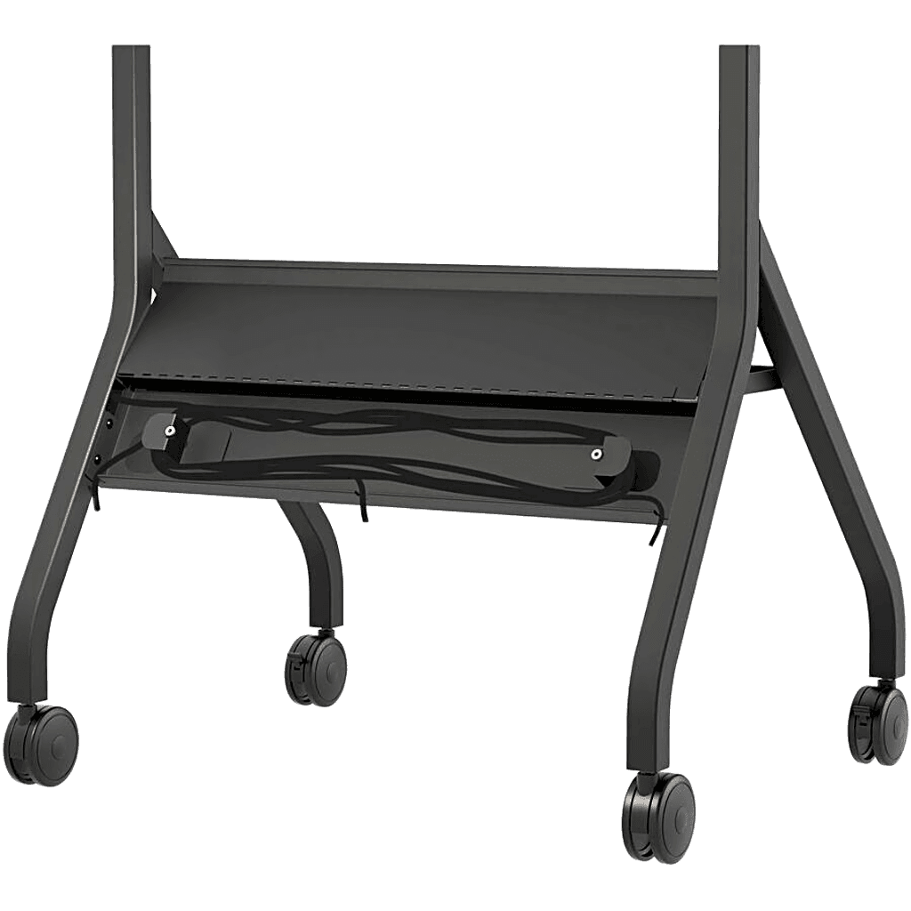 El SmartMount® Flat Panel Cart SR860 es un carro móvil profesional diseñado para despliegues de pantallas planas en entornos corporativos y educativos. Su estructura tubular minimalista ofrece una estética limpia al ocultar todo el cableado a través de su diseño interno. Incluye un cable de alimentación de 20 pies con 3 salidas preinstalado que se almacena ordenadamente en el compartimento trasero abatible. El carro cuenta con ruedas de doble rodamiento de 4 pulgadas que cumplen con especificaciones UL y permiten un movimiento fácil sobre baldosas, alfombras y umbrales. La cubierta trasera de ABS moldeado ayuda a ocultar cableado, reproductores multimedia o mini PCs, manteniendo un aspecto ordenado incluso cuando la parte posterior es visible.