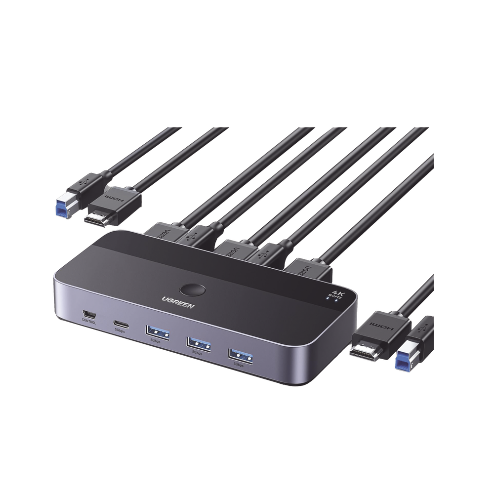 Conmutador KVM HDMI 4K | HDMI 2.0 | 2 Entradas 1 Salida | 4 Puertos USB 3.0 (3 USB-A *1 USB-C) | Soporta 4K@60Hz | HDR | Indicador Led | Compatible Win, MacOs y Linux | Carcasa de Aluminio.