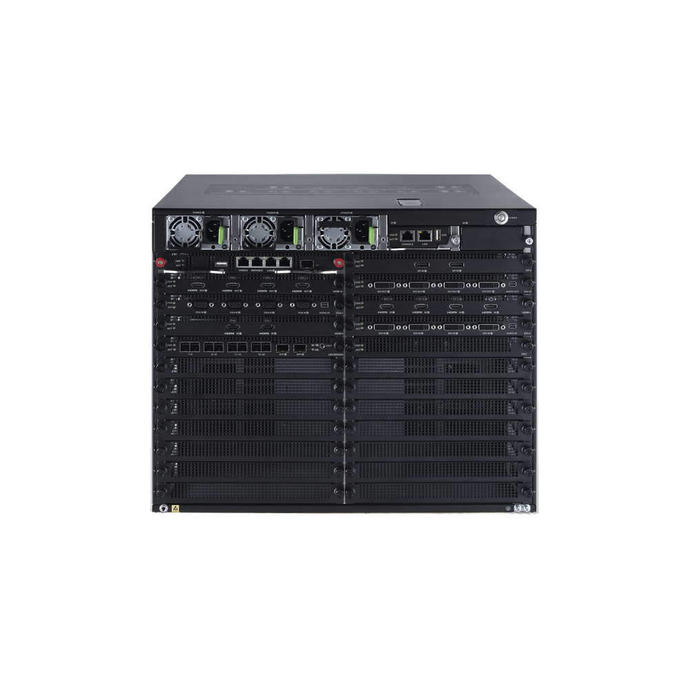 - Hasta 23 tarjeta de entrada/salida de video (cualquier combinación, NO INCLUIDAS):