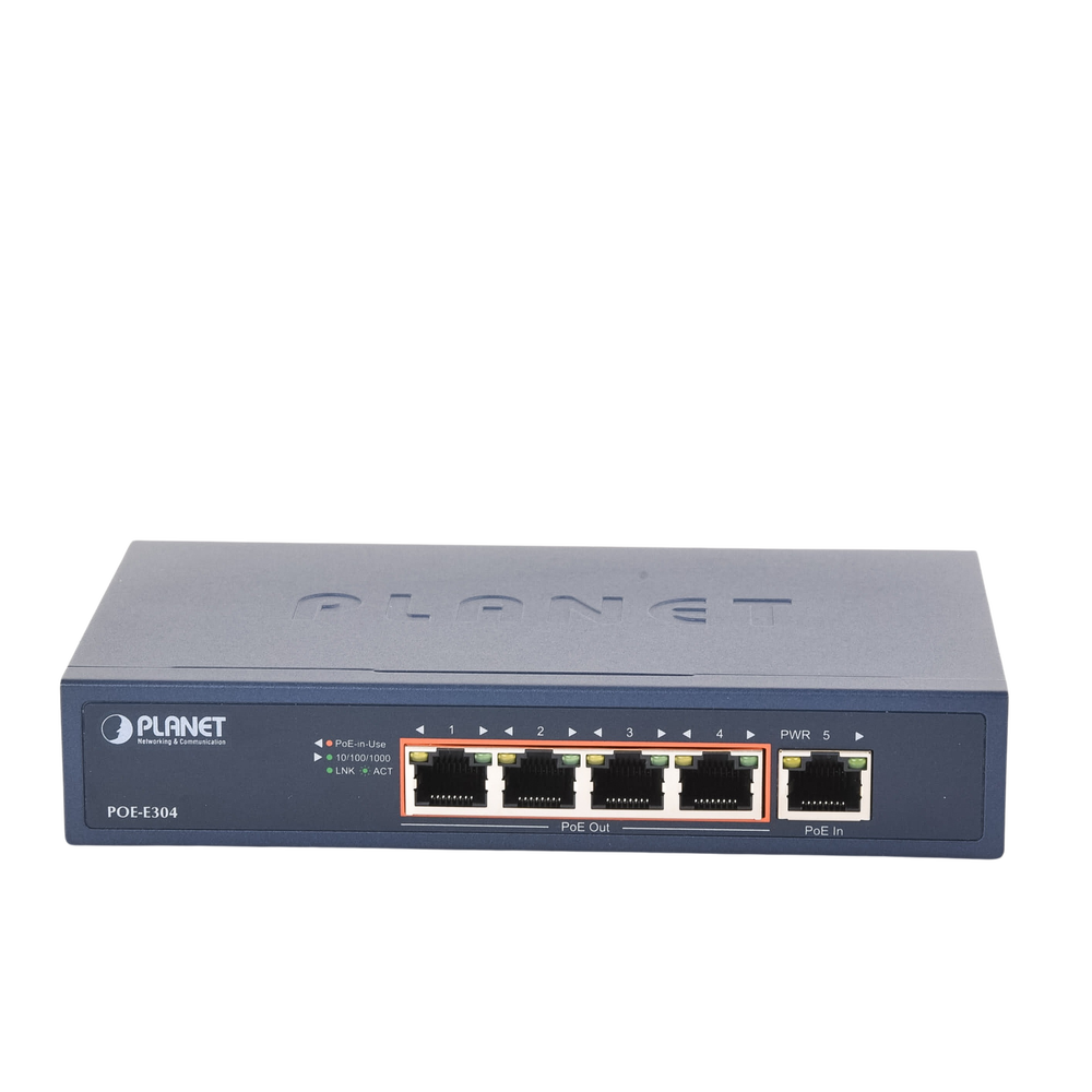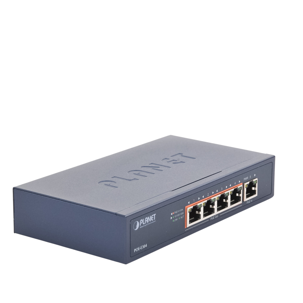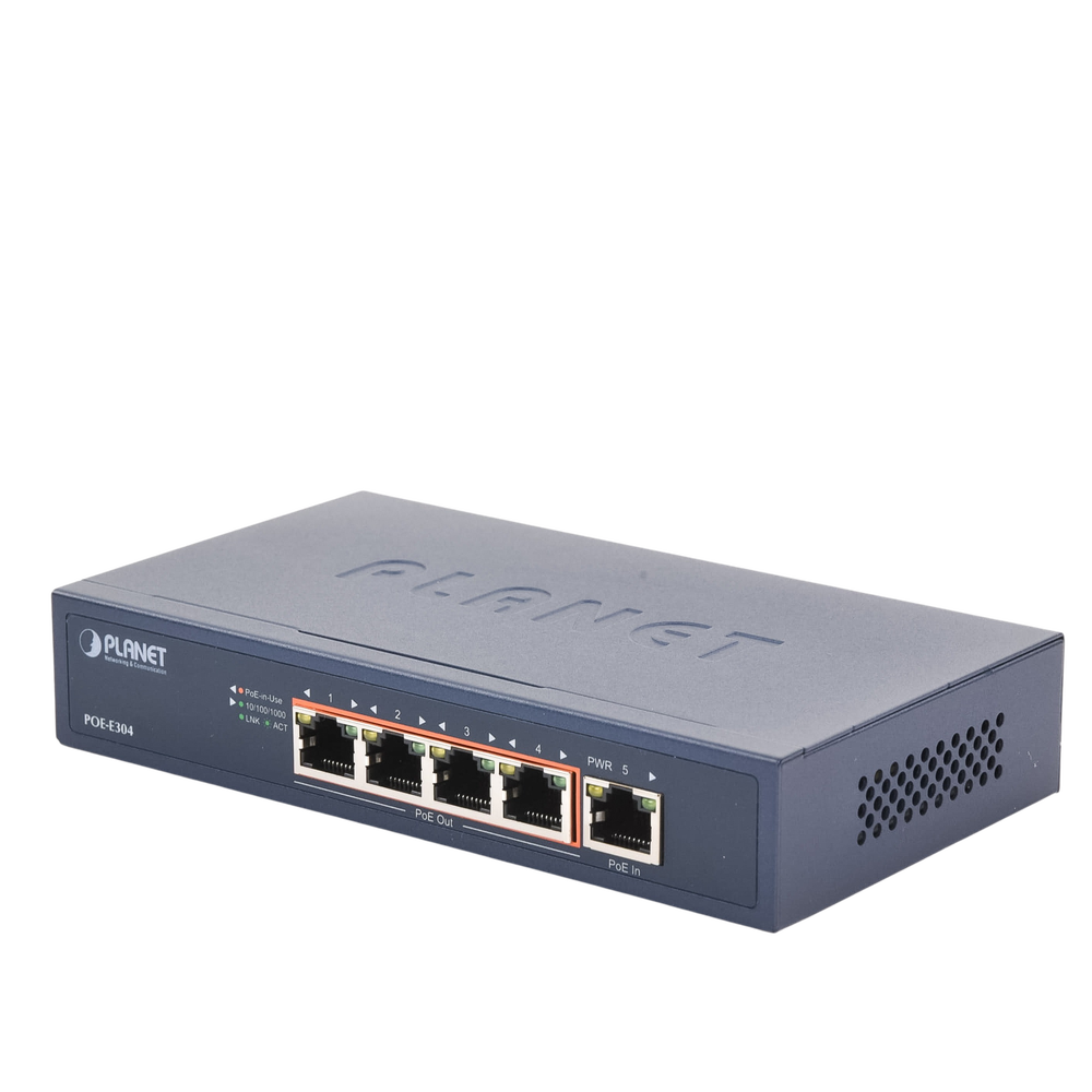 - Puertos de Red: 1 x 10/100/1000BASE-T Ethernet with Ultra PoE ‘Data + DC’ in, auto MDI/MDI-X, auto-negotiation RJ45 connector. 4 x 10/100/1000BASE-T Ethernet with IEEE 802.3at/802.3af PoE ‘Data + DC’ out, auto MDI/MDI-X, auto-negotiation RJ45 connector