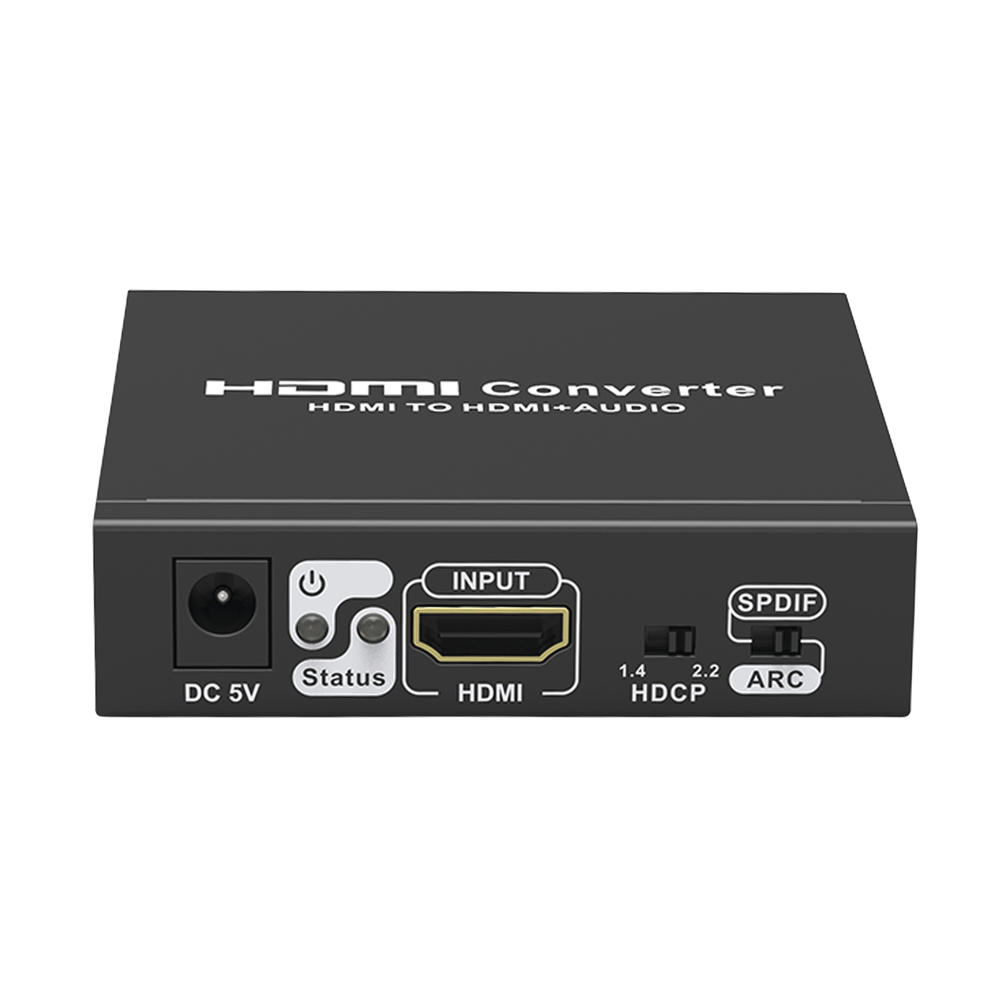 Este dispositivo es la solución ideal, si lo que quieres es disfrutar contenido de video digital HDMI con sonido separado; solo conéctalo a un amplificador o componente, para que el audio tenga mayor potencia. Está diseñado para tomar una señal digital HDMI y separar el audio en 3 diferentes salidas, así podrás elegir la que necesites (SPDIF + R/L (3.5 mm) + COAXIAL.). Además, conserva una salida HDMI para que conectes normalmente un dispositivo de reproducción de video como DVD, Blu-Ray o decodificador de TV de paga a tu pantalla. Admite convertir HDCP1.4 a HDCP2.2, HDCP2.2 a HDCP1.4, soporta resoluciones hasta 4K. El gabinete está fabricado de cerramiento metalico y tiene tamaño compacto, así que puede instalarse de forma discreta, ya que ocupa poco espacio.