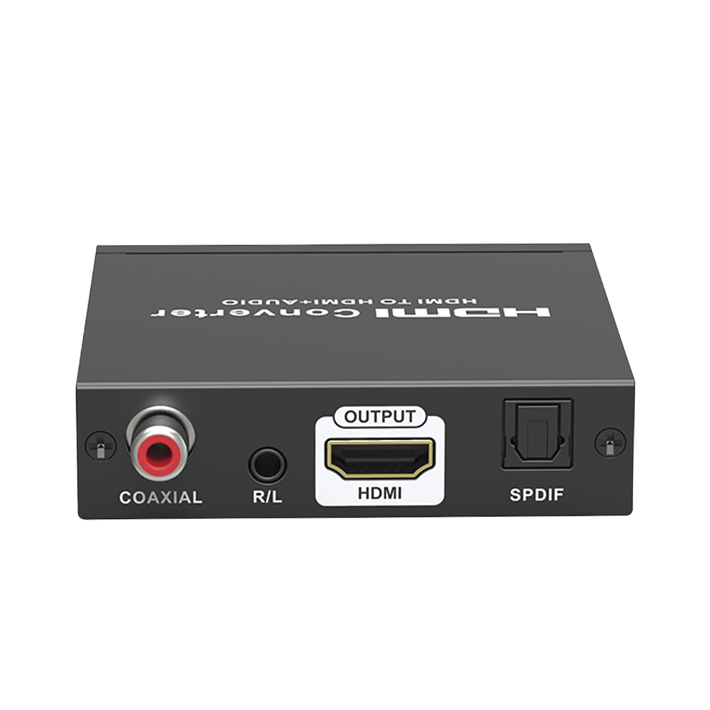 - Convierte una señal de entrada HDMI a una salida de video HDMI + salidas de audio SPDIF + R/L + COAXIAL.
