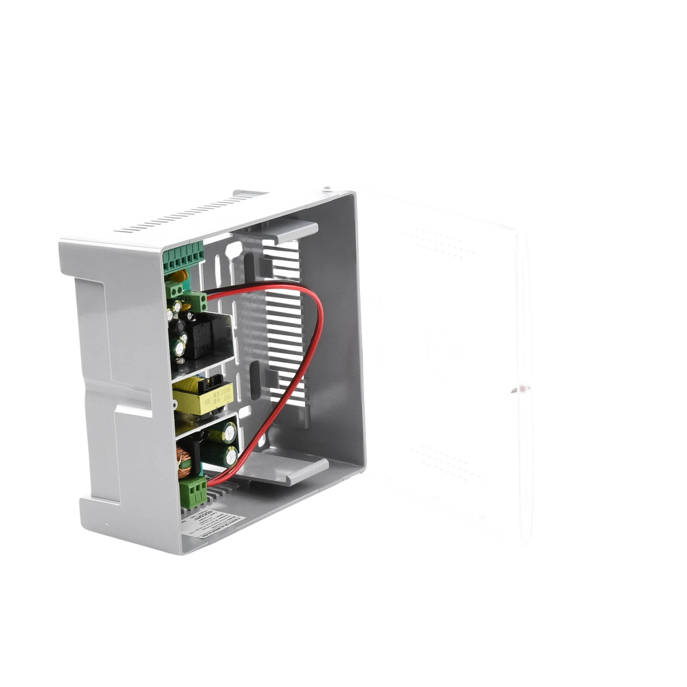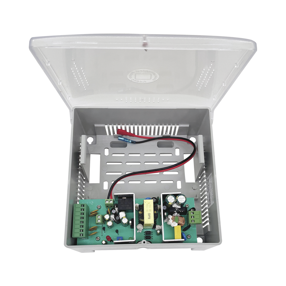 La luz verde enciende cuando la fuente cuenta con su entrada de alimentación de 100-240 Vca, suministrando así tanto a la carga de la batería como la requerida. Cuando falla la energía, la batería proporciona el voltaje, el led en rojo enciende, y al mismo tiempo entra en la etapa de monitoreo del voltaje de la batería. Cuando detecta que el voltaje de la batería cae a 10.5 Volts, el circuito cortará la carga, la fuente de alimentación ya no cargará, para evitar que la batería se descargue, protegiendo así la vida útil de la batería. El sistema se reiniciará automáticamente cuando vuelva la alimentación de la red a su estado normal.
