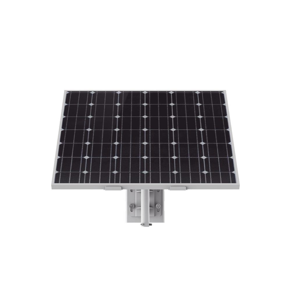- Incluye: panel solar, batería de respaldo, montaje de poste, brazo para cámara y panel