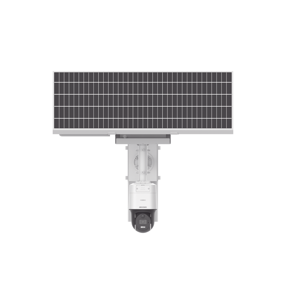- Incluye: cámara, panel solar, batería de respaldo, montaje de poste, brazo para cámara y panel