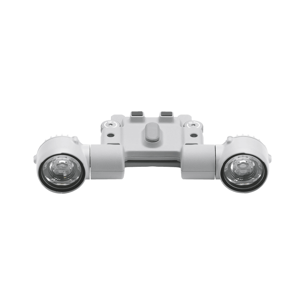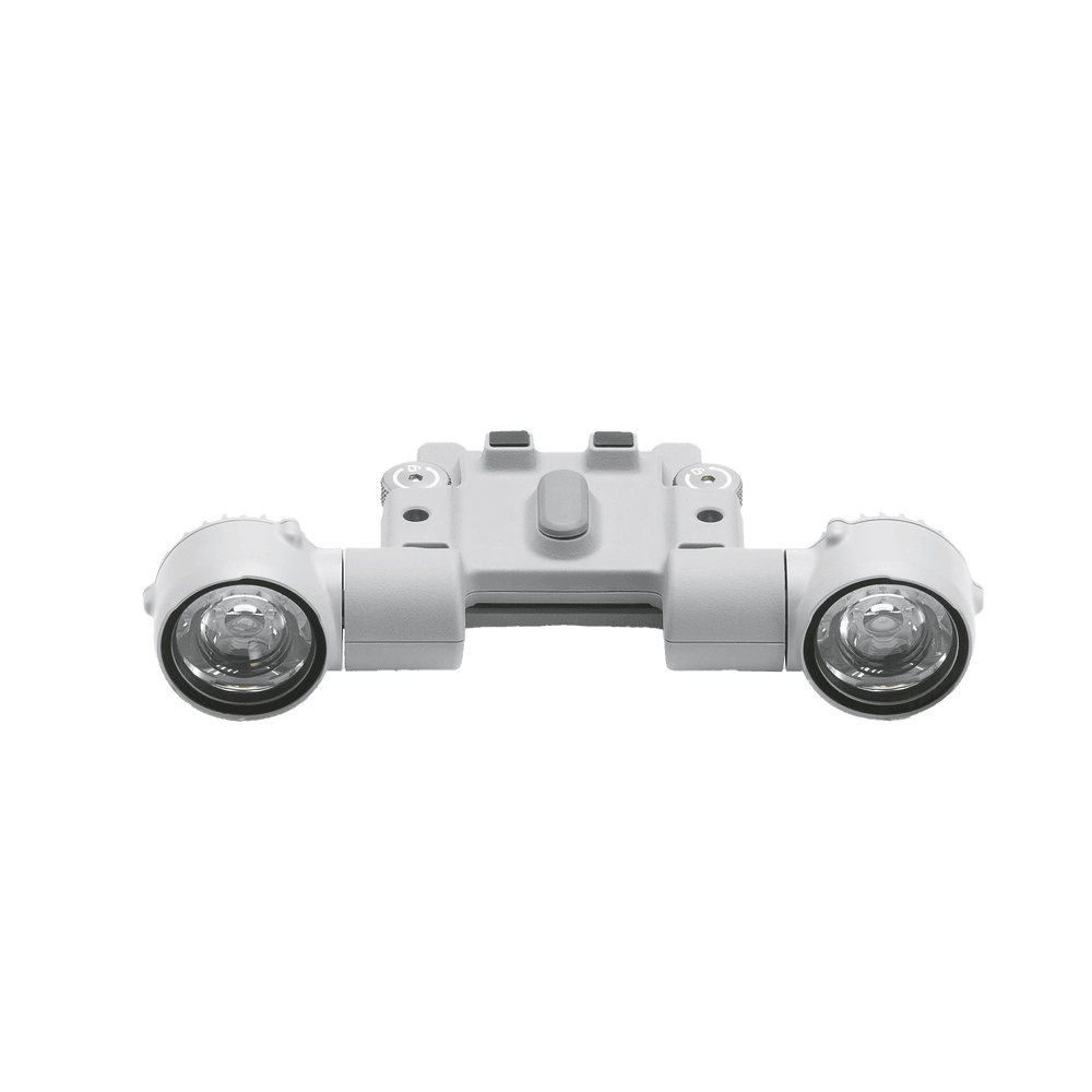 El reflector DJI AL1 SpotLight, ofreciendo flexibilidad para diferentes aplicaciones. La instalación debe realizarse con el dron apagado y requiere una calibración de la brújula para asegurar un funcionamiento óptimo.