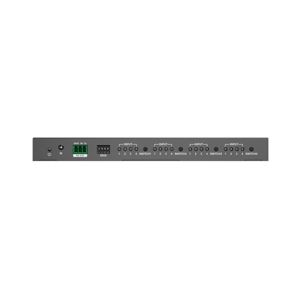 El Switch matricial HDMI de 4×4 permite cambiar fácilmente las señales de entrada HDMI a 4 pantallas HDMI. Admite una resolución HDR UHD de hasta 4096×2160 a 60 Hz y cuenta con varios métodos de conmutación y dos salidas HDMI con reducción automática de escala. Es una solución confiable y de alta definición para transmitir video en aplicaciones como monitoreo de seguridad, educación, exhibición y transmisión, y centros de comando.