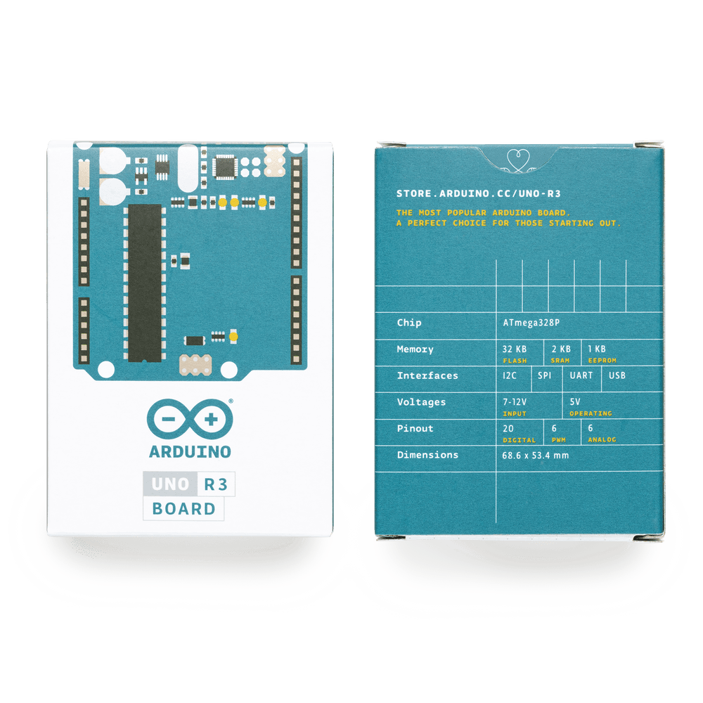 La placa Arduino UNO R3 es la plataforma de desarrollo insignia de Arduino, diseñada para aplicaciones de educación, makers e industriales. Equipada con el microcontrolador ATmega328P operando a 16 MHz, ofrece 32 KB de memoria Flash, 2 KB de SRAM y 1 KB de EEPROM. Incluye 14 pines digitales de entrada/salida (6 con capacidad PWM), 6 entradas analógicas, interfaz USB-B para programación y alimentación, y conectores ICSP para programación en circuito. La arquitectura incorpora un procesador secundario ATmega16U2 para la comunicación USB, proporcionando una solución robusta y versátil para proyectos de electrónica y prototipado.