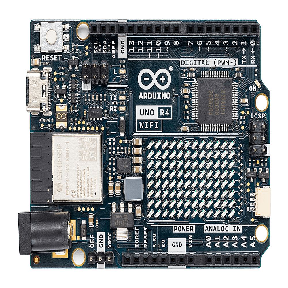La Arduino UNO R4 WiFi representa la evolución de la serie UNO hacia arquitecturas de 32 bits, reemplazando los microcontroladores AVR de 8 bits con el potente RA4M1 de Renesas basado en Arm Cortex-M4 a 48 MHz. Esta placa mantiene la compatibilidad física y eléctrica con shields y accesorios de versiones anteriores mientras incorpora capacidades avanzadas como conectividad WiFi 4 y Bluetooth 5 mediante el módulo ESP32-S3-MINI-1-N8. Con memoria significativamente expandida (256 kB Flash, 32 kB SRAM, 8 kB EEPROM) y periféricos mejorados incluyendo DAC de 12 bits, OPAMP y matriz LED programable 12×8, está diseñada para aplicaciones IoT, educación y proyectos makers que requieren mayor potencia de procesamiento y conectividad inalámbrica integrada.