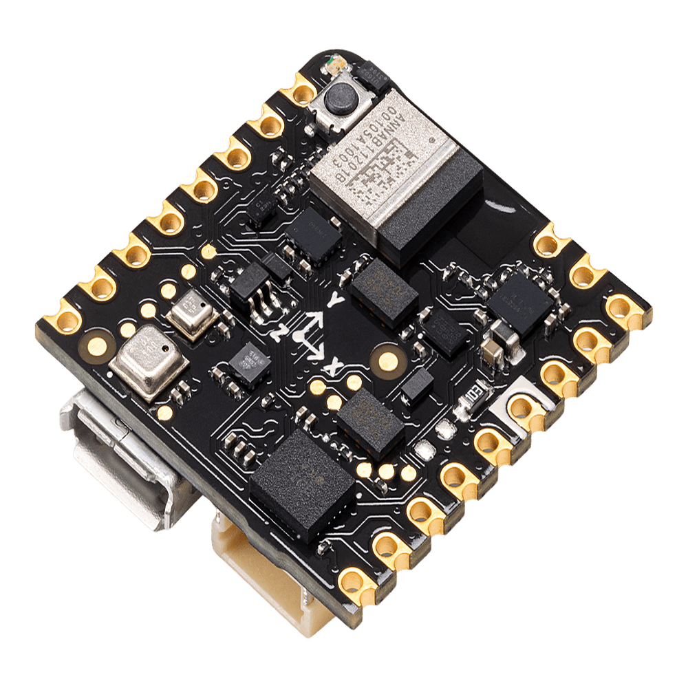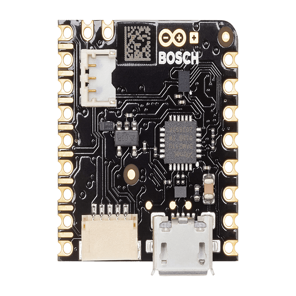 La Arduino Nicla Sense ME es una plataforma de desarrollo IoT compacta con sensores industriales Bosch de alto rendimiento integrados. Equipada con microcontrolador nRF52832 Cortex-M4F de 64MHz, 512KB flash interno y 64KB SRAM, más 2MB de memoria flash externa para almacenamiento de datos. Incluye conectividad Bluetooth 5.0 integrada mediante módulo ANNA-B112 con antena interna. La arquitectura incorpora cuatro sensores Bosch: BHI260AP (IMU 6 ejes con IA integrada), BME688 (sensor ambiental con detección de VOC), BMP390 (sensor de presión de alta precisión) y BMM150 (magnetómetro 3 ejes). Diseñada para aplicaciones de redes de sensores inalámbricas, fusión de datos e inteligencia artificial en edge computing con consumo ultra bajo de energía.