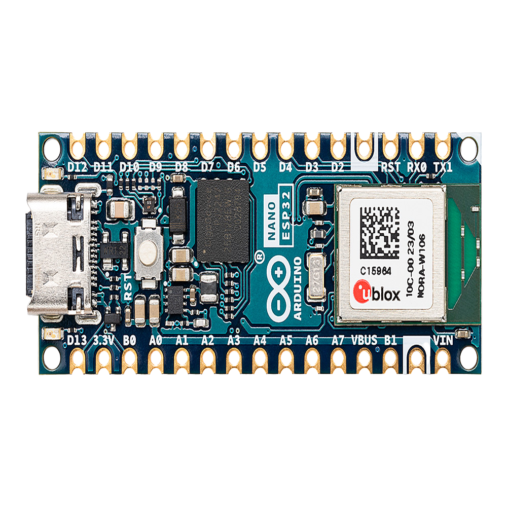 La placa Arduino Nano ESP32 representa la primera placa Arduino completamente basada en la arquitectura ESP32-S3, integrando el módulo NORA-W106-10B de u-blox®. Este desarrollo board está específicamente diseñado para aplicaciones IoT profesionales, ofreciendo conectividad dual Wi-Fi 4 y Bluetooth LE 5.0 con antena integrada. La arquitectura incluye un procesador Xtensa® LX7 dual-core operando a 240 MHz con 512 kB SRAM, 384 kB ROM y memoria RTC dedicada para operaciones de ultra bajo consumo. La placa incorpora 16 MB de memoria flash externa QSPI y 8 MB de PSRAM embebida, proporcionando capacidades extendidas para aplicaciones complejas. Compatible nativamente con Arduino Cloud y MicroPython, está optimizada para automatización del hogar, sensores IoT y diseños de baja potencia con consumos desde 7 μA en deep sleep.