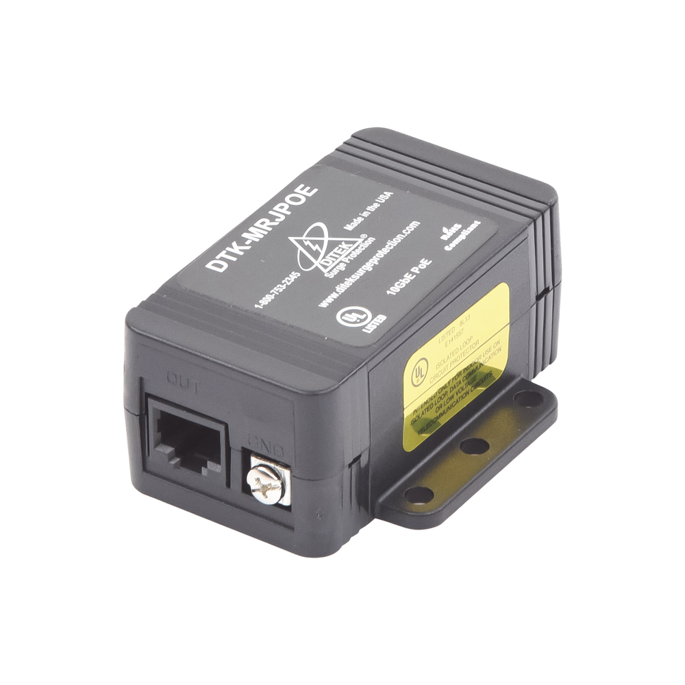 El DTK-MRJPOE de DITEK protege los circuitos que utilizan conexiones Power over Ethernet de última generación.