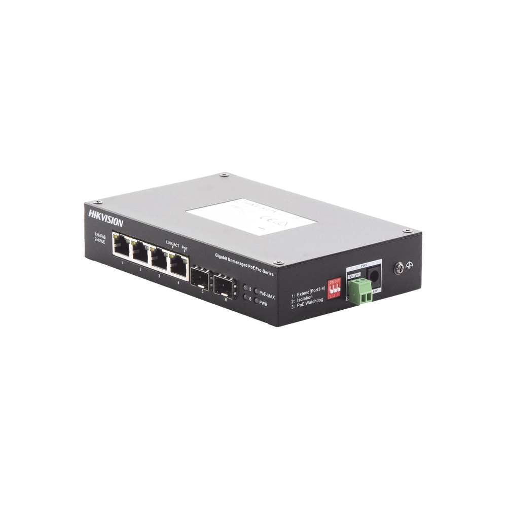 Los Switches PoE de Hikvision permiten al momento de utilizar un extensor PoE Hikvision modelo DS-3E0103DP-E/R o DS-3E0503DP-E/R alcanzar distancias de hasta 200 metros.