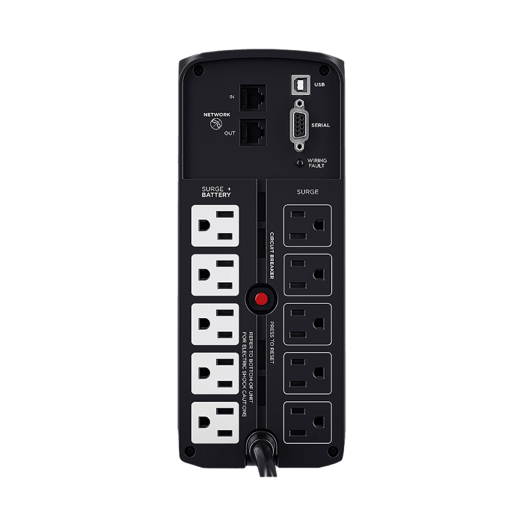 El UPS proporciona regulación automática de voltaje (AVR) para mantener niveles seguros de voltaje para los equipos conectados. La protección de línea de datos presentada protege los teléfonos, redes y equipos de comunicación contra sobretensiones y picos y otras irregularidades de alimentación. Los usuarios pueden acceder a la información de las condiciones de energía / batería y configurar ajustes avanzados, incluida la alerta de posibles problemas de energía y la autoevaluación con solo presionar un botón.